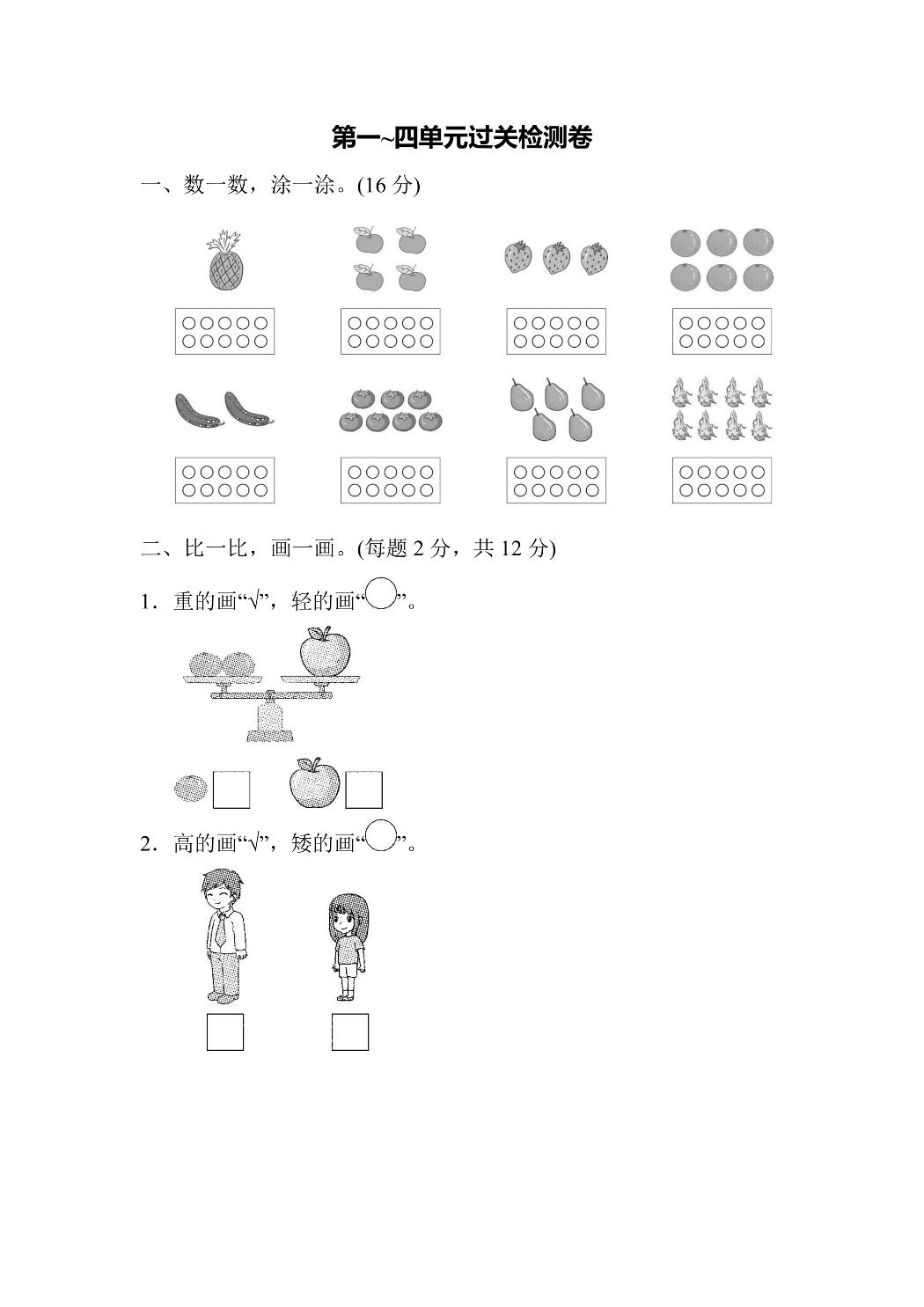 🧮 苏教版一年级数学1-4单元过关卷|高清PDF|免费下载