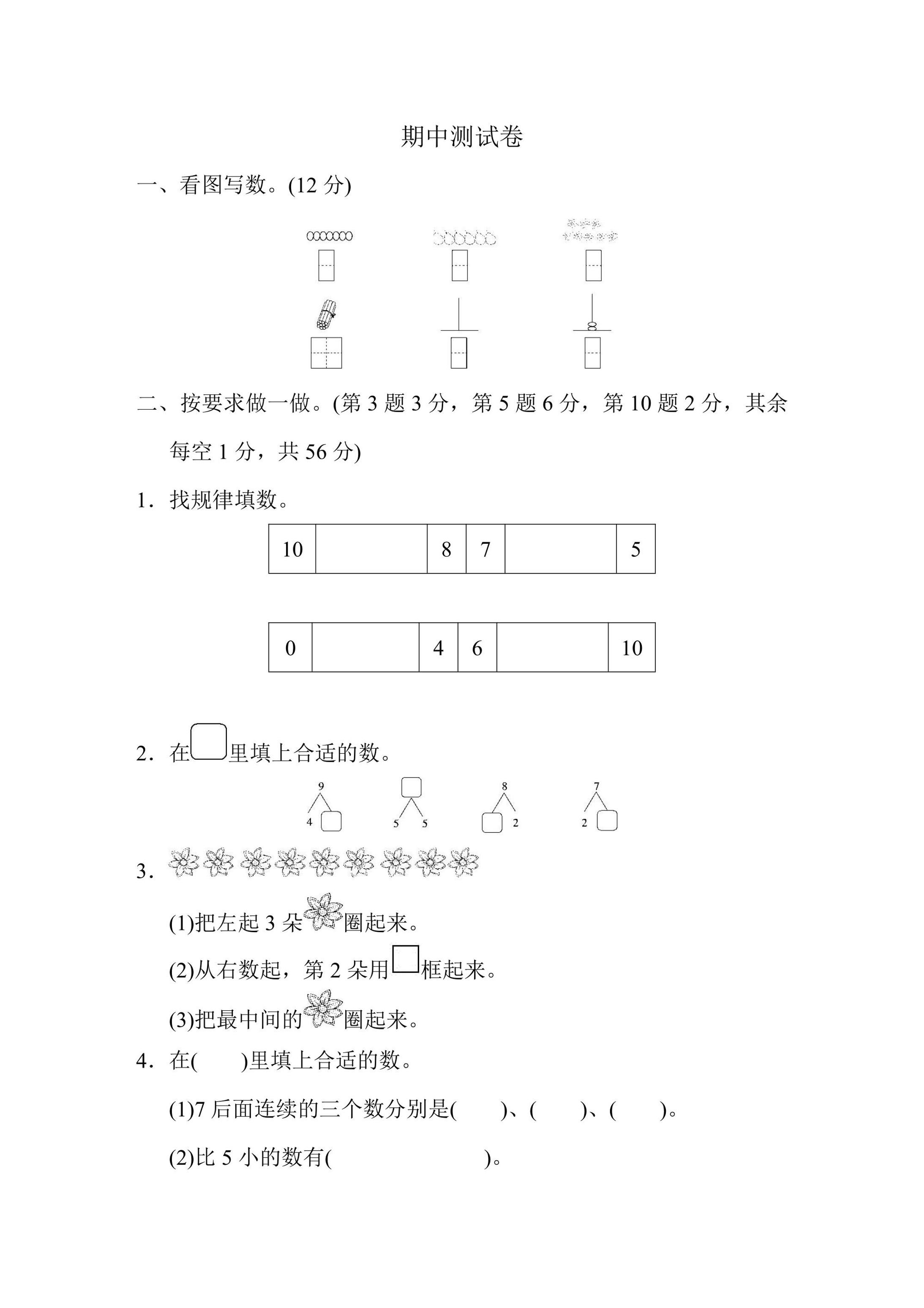 🧮 苏教版一年级数学期中检测卷2|含答案解析|免费下载