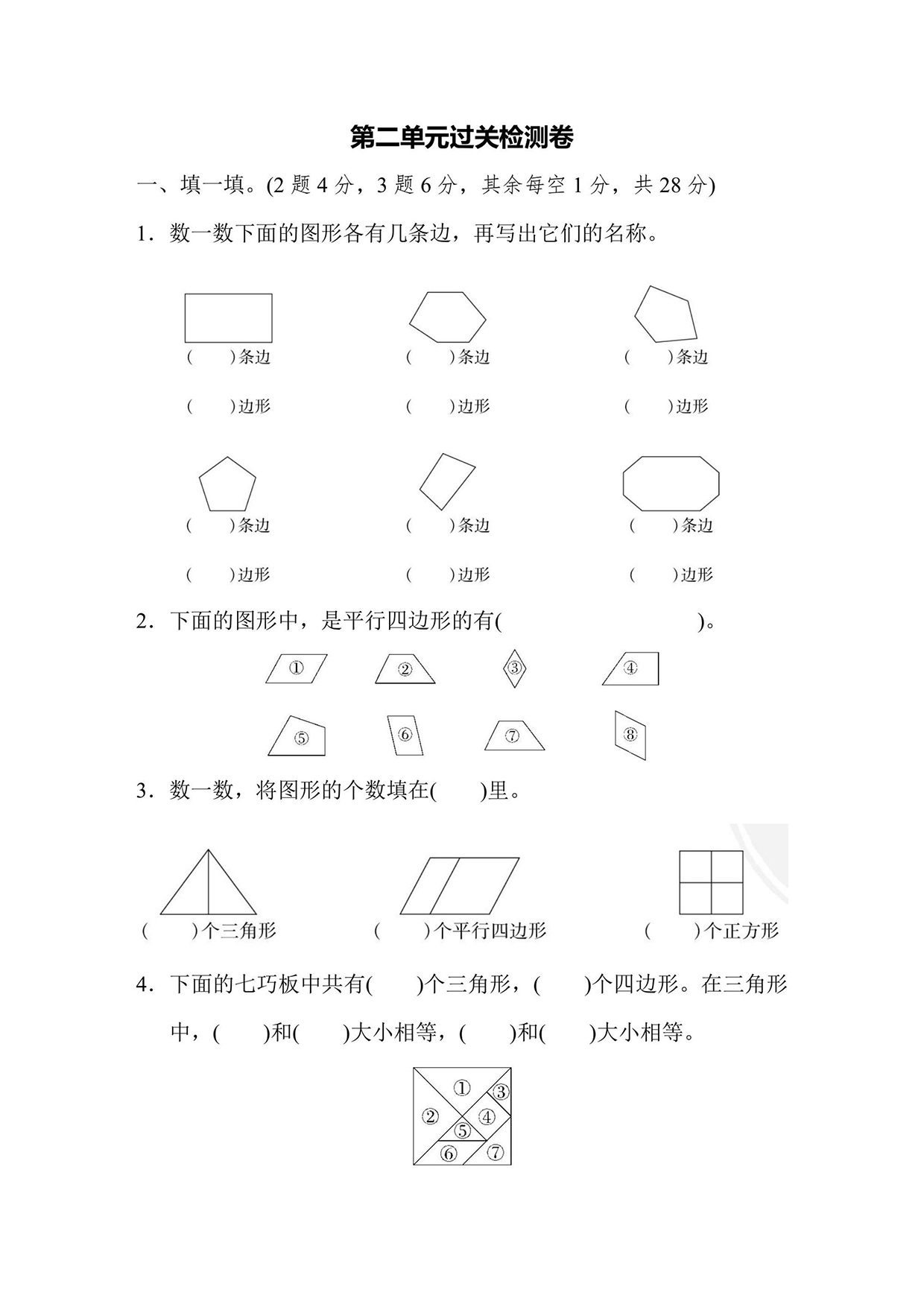 检测卷题目由专业教师团队根据苏教版教材编写,题型设计科学合理,符合二年级学生认知特点。
