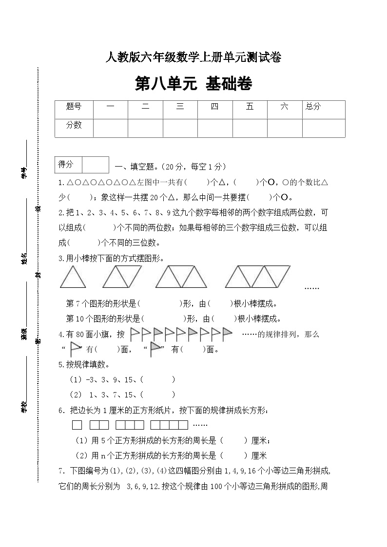 鸡娃题库精心准备人教版小学六年级数学上册第八单元测试基础卷,完全免费提供,高清可打印,为孩子的数学学习画上完美句点!