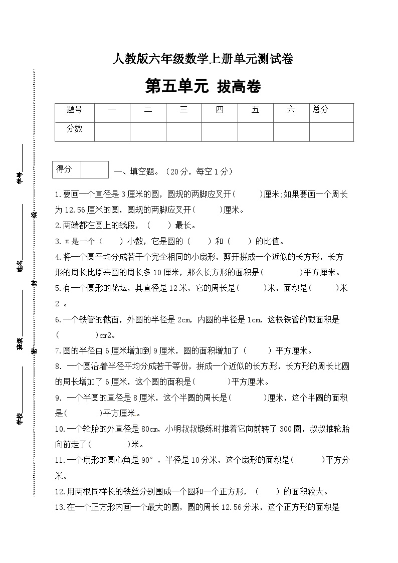 这份人教版六年级数学第五单元拔高卷是提升几何能力的绝佳选择,高清可打印的设计让学习更加直观!