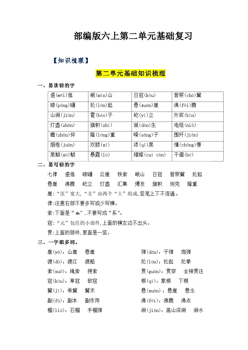 📌 免费提供高清可打印复习资料,助力孩子高效学习第二单元内容 📌