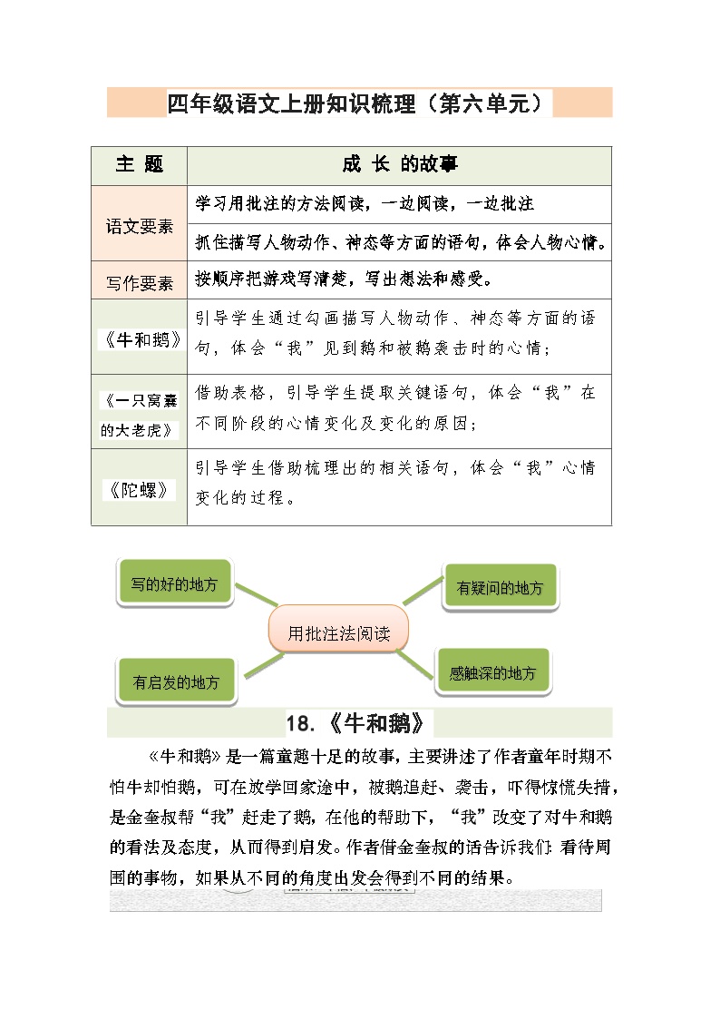 部编版四年级语文上册第六单元围绕"成长故事"主题,选编多篇关于成长的文学作品。本单元注重情感教育和价值观培养。